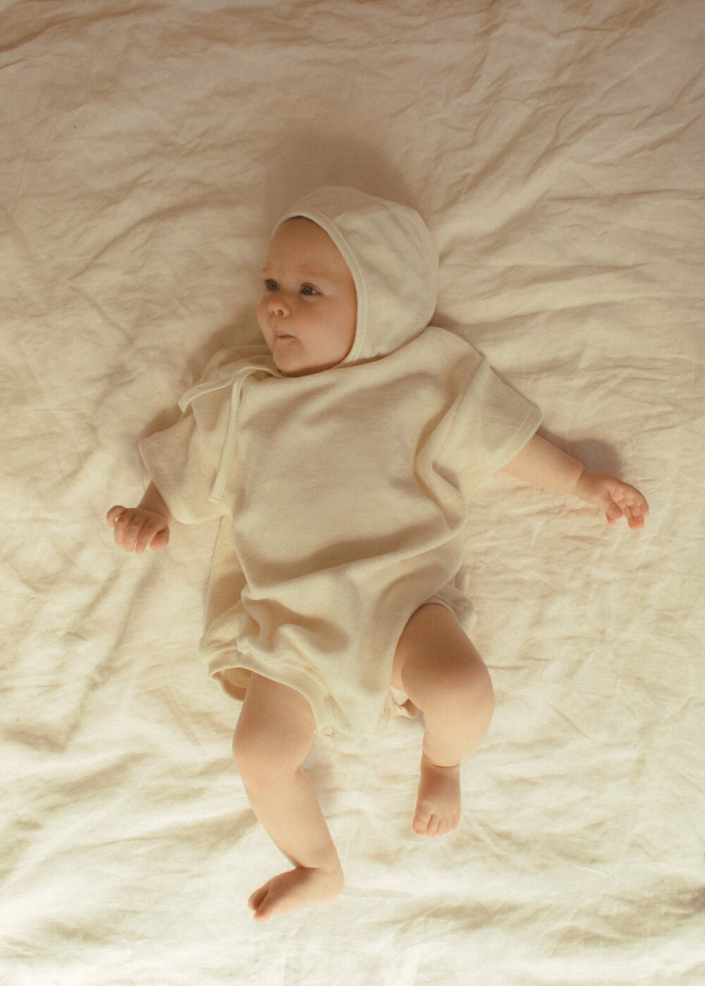 흡수력이 좋은 오가닉 테리소재를 사용한 반팔 바디수트 입니다.