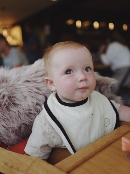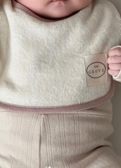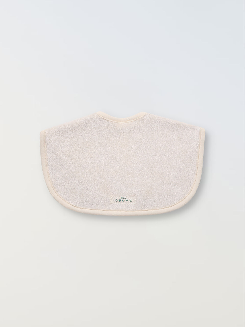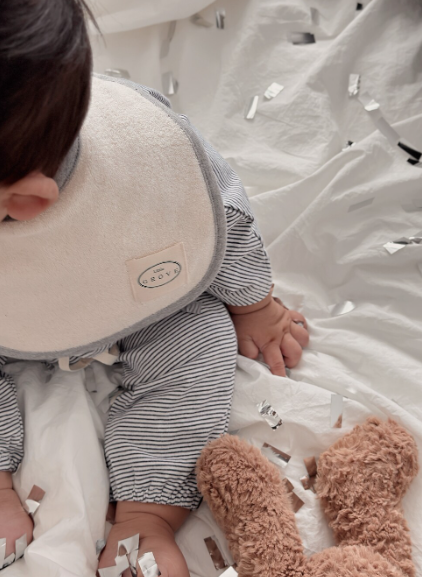 부드럽고 흡수력이 뛰어난 오가닉 타올 원단으로 제작된 턱받이입니다.