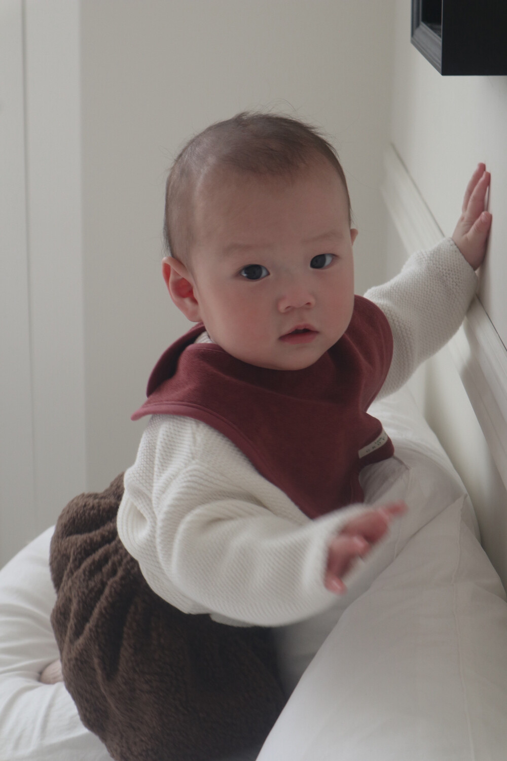은가을·겨울철에 특히 잘 어울리는 따뜻한 촉감의 턱받이입니다.