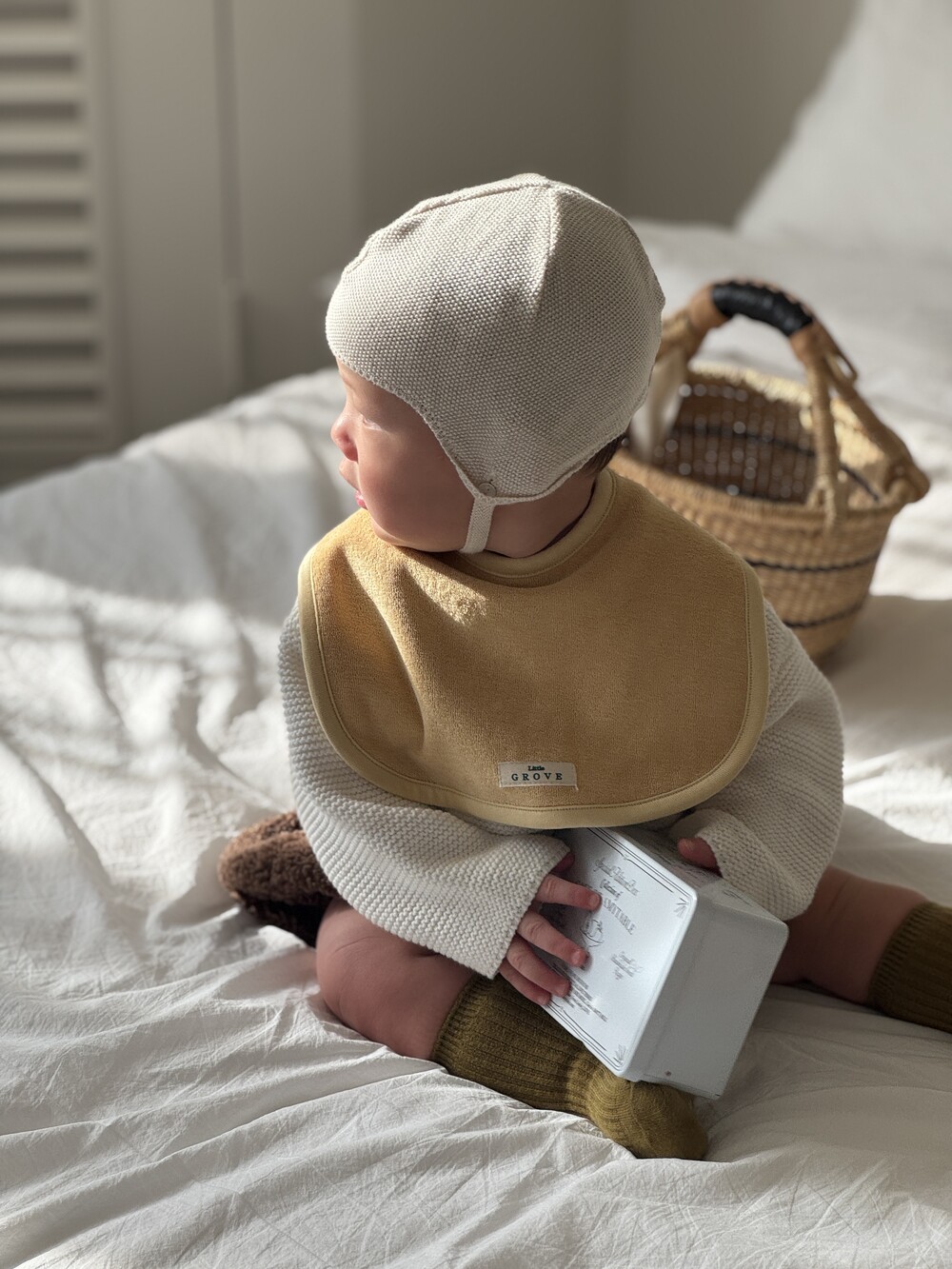부드럽고 도톰한 100% 코튼 테리 소재로 제작된 Soft Hug Bib