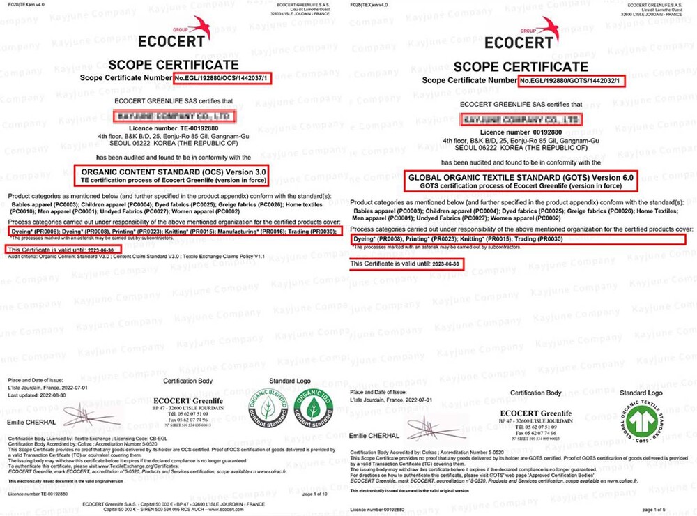 GOTS 인증 100% 오가닉 코튼 ![]()