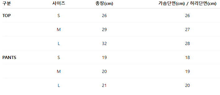 Size guide: (단위 cm)