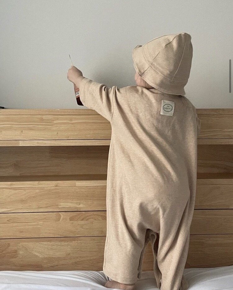 오픈시 고급진 우드톤의 단추를 부착 하였으며 편한 기저기 교체를 위해 크러치 부분에 무독성 YKK스냅 버튼을 사용하였습니다.