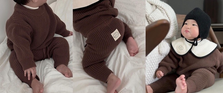 내추럴한 무드가 돋보이는 니트 스웨터와 팬츠 세트 입니다.
