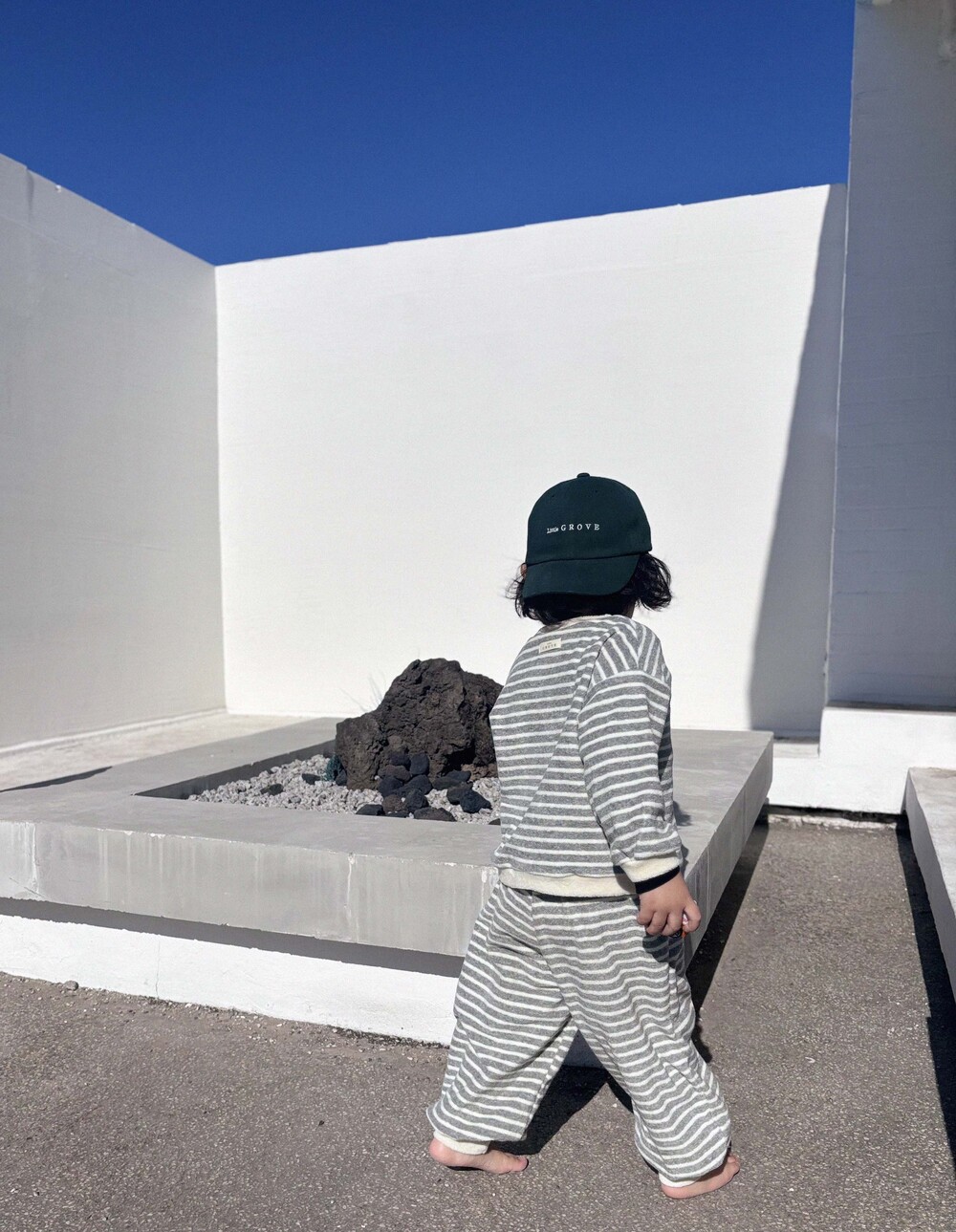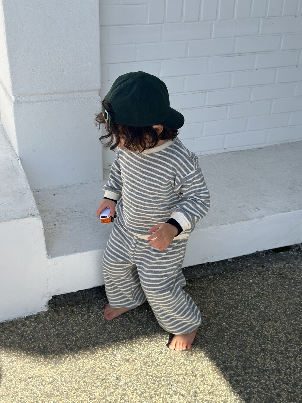 부드러운 코튼 테리 소재와 감각적인 스트라이프 패턴의 조합,
