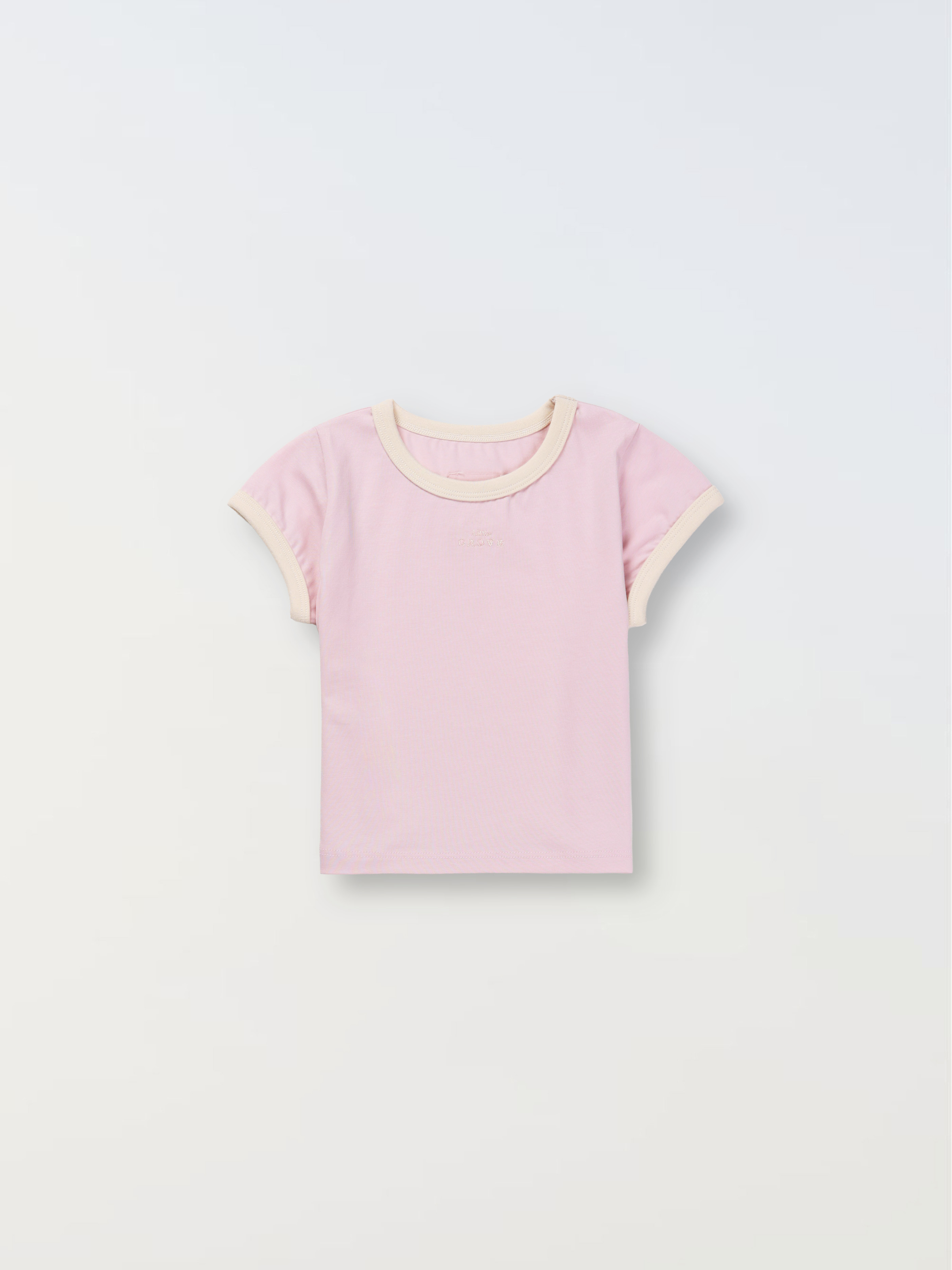 리틀그로브에서 엄선한 오가닉 실켓 소재로 제작된 링거 반팔 티셔츠입니다.