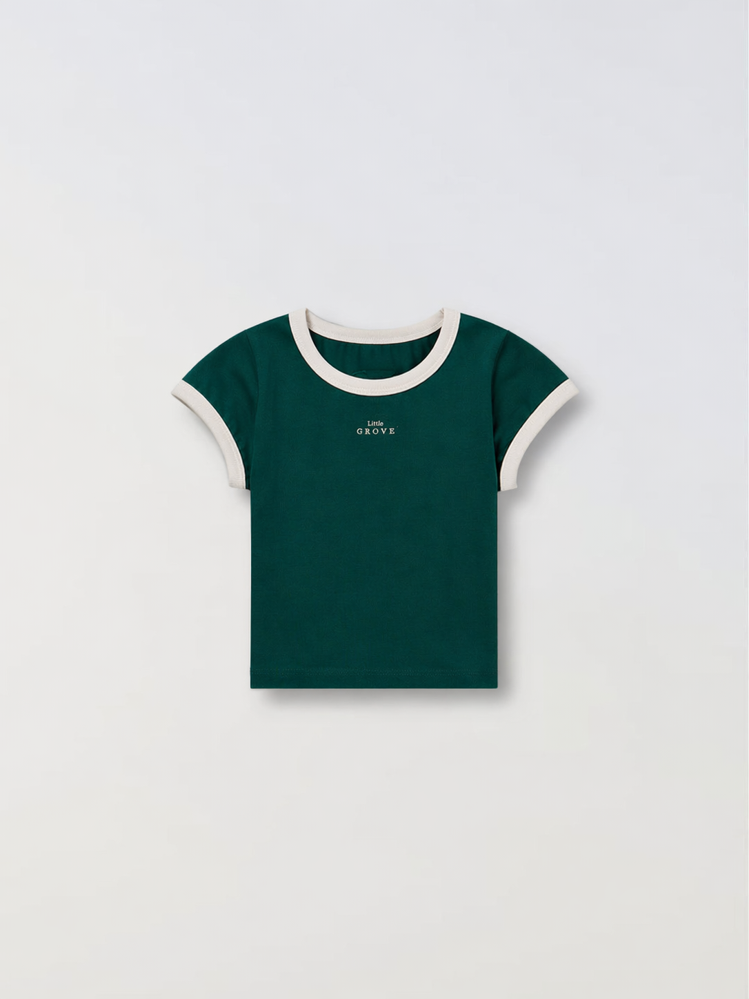 리틀그로브에서 엄선한 오가닉 실켓 소재로 제작된 링거 반팔 티셔츠입니다.