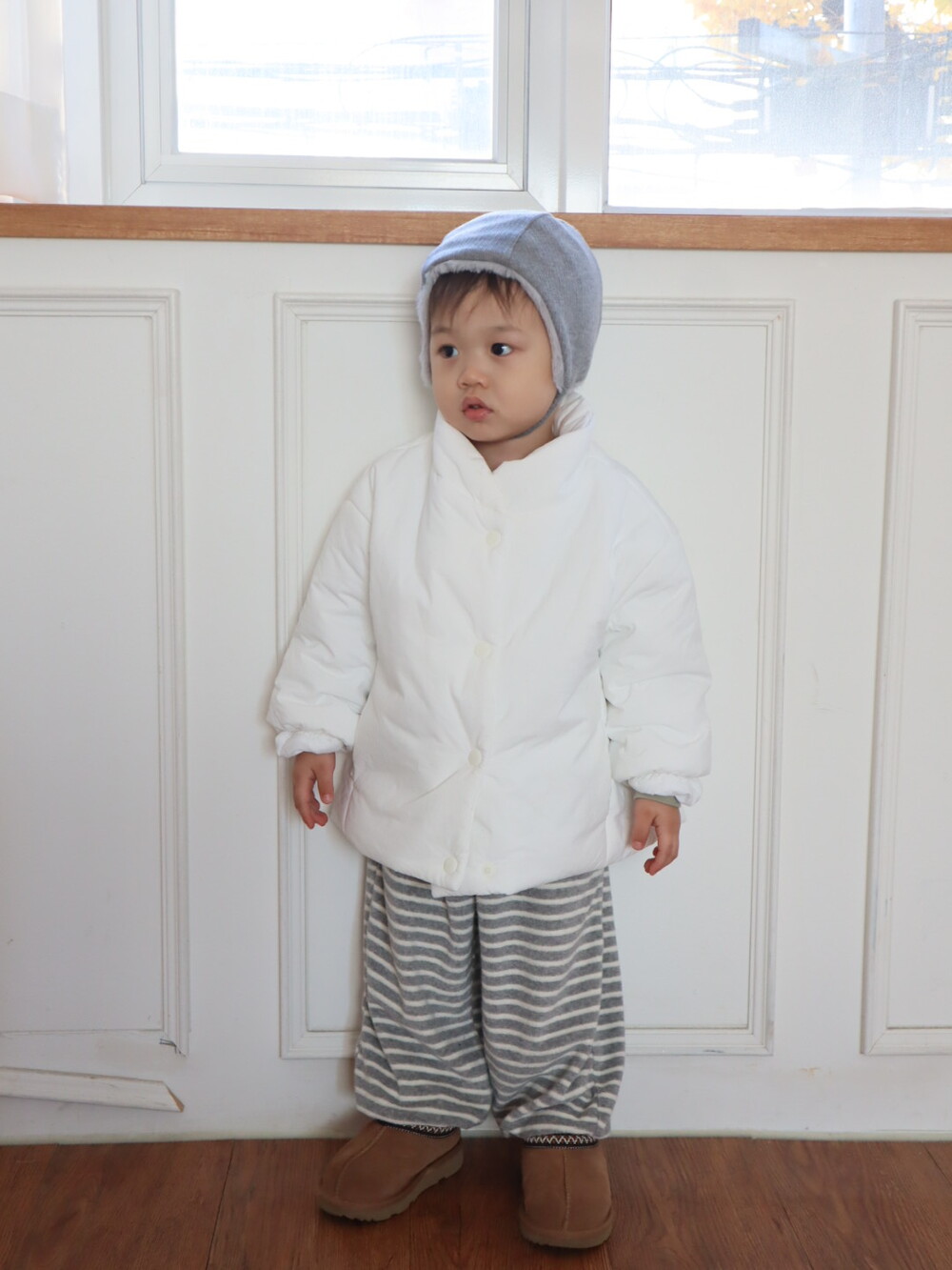 넥 라인을 부드럽게 감싸주는 하이넥 스냅 디테일로 한층 더 따뜻하게,
